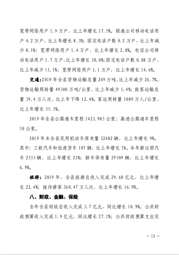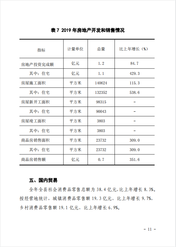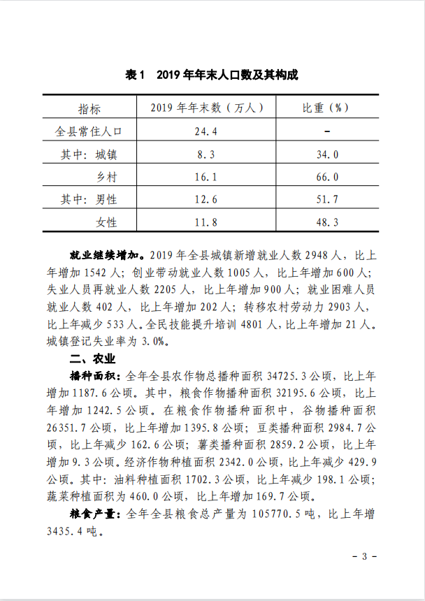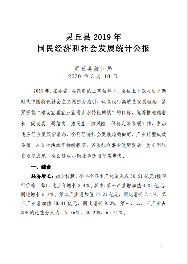 靈丘縣2019年國民經濟和社會發展統計公報
