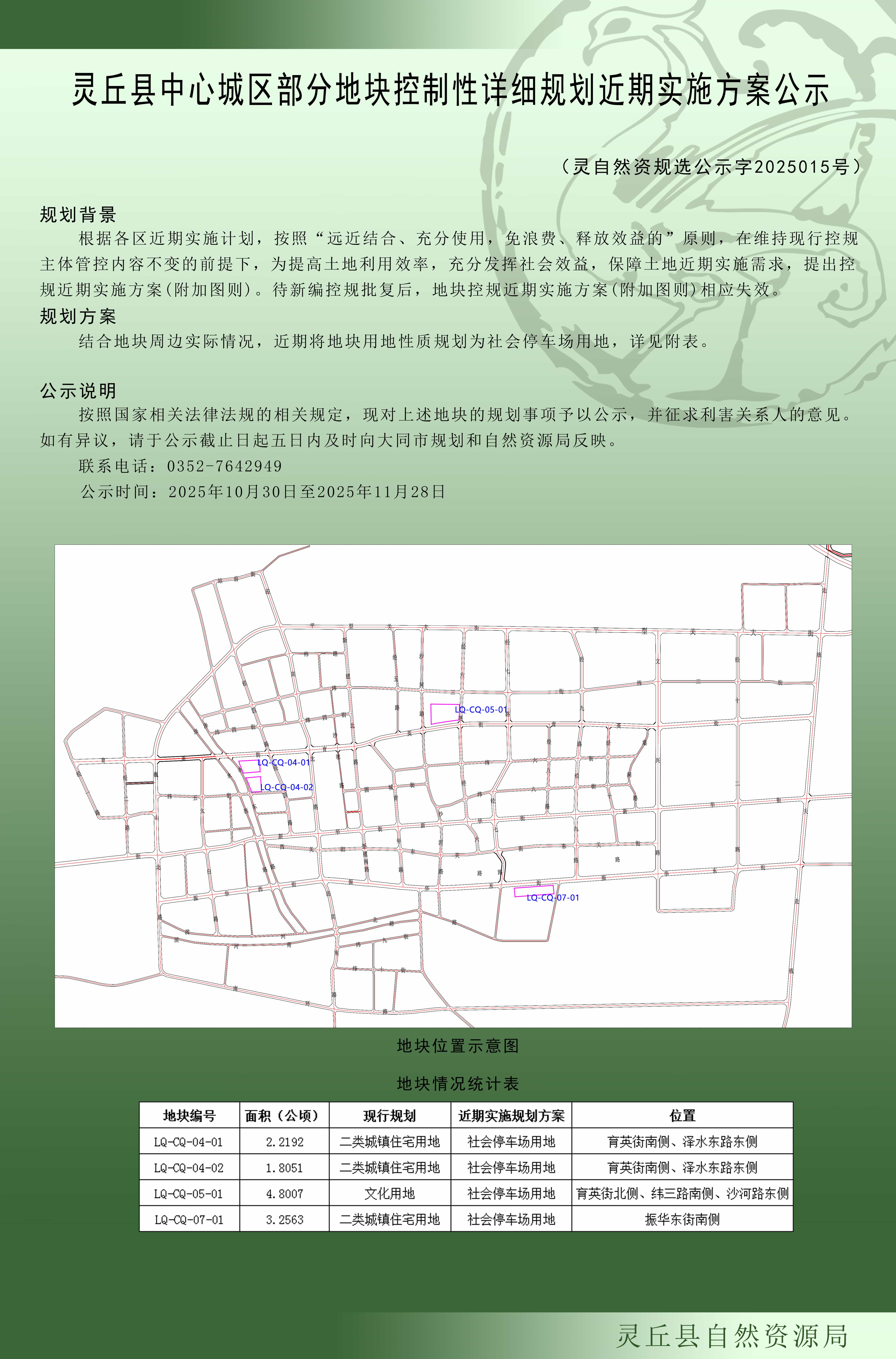 靈丘縣中心城區部分地塊控制性詳細規劃近期實施方案公示