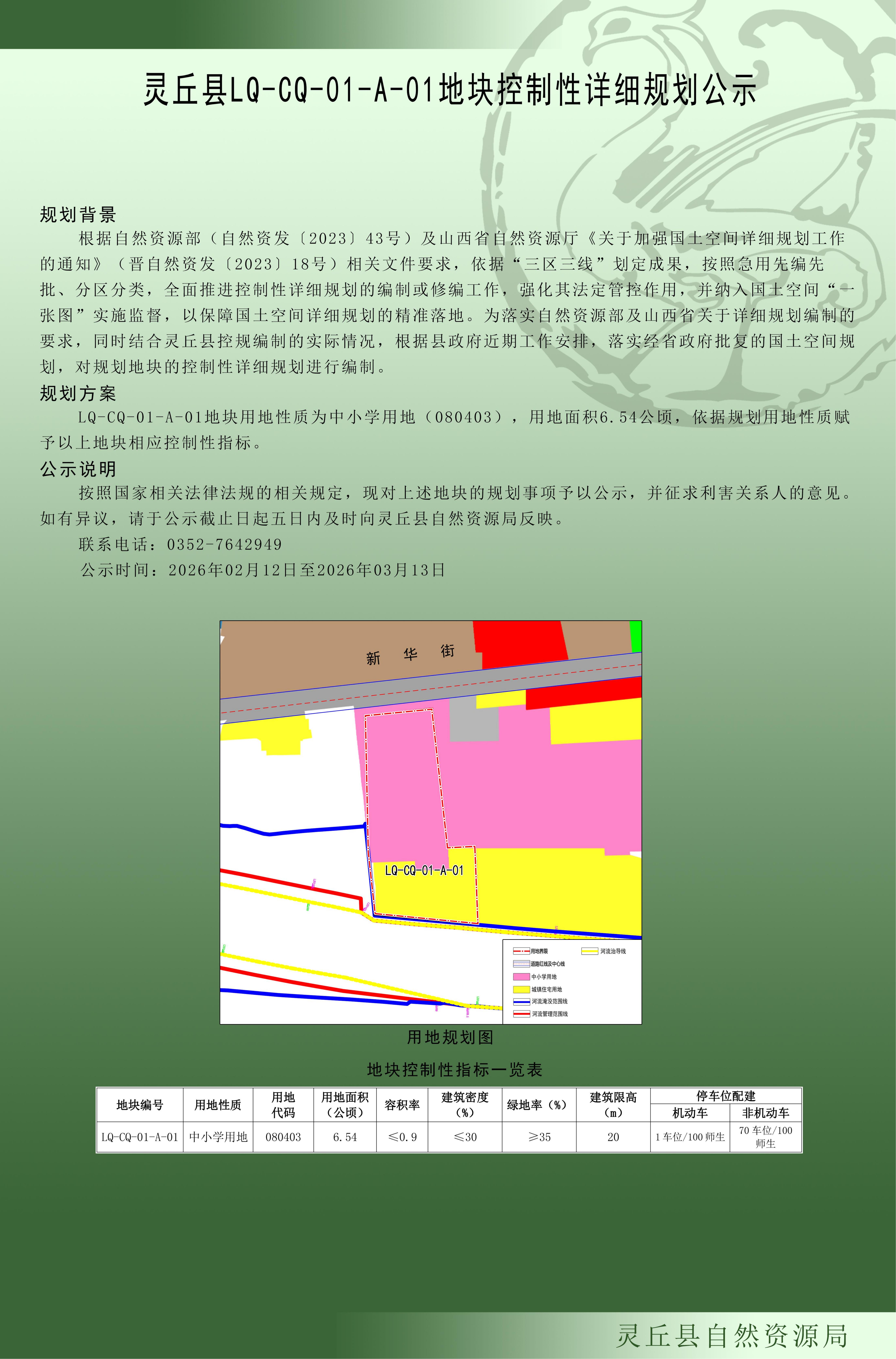 靈丘縣LQ-CQ-01-A-01地塊控制性詳細規劃公示