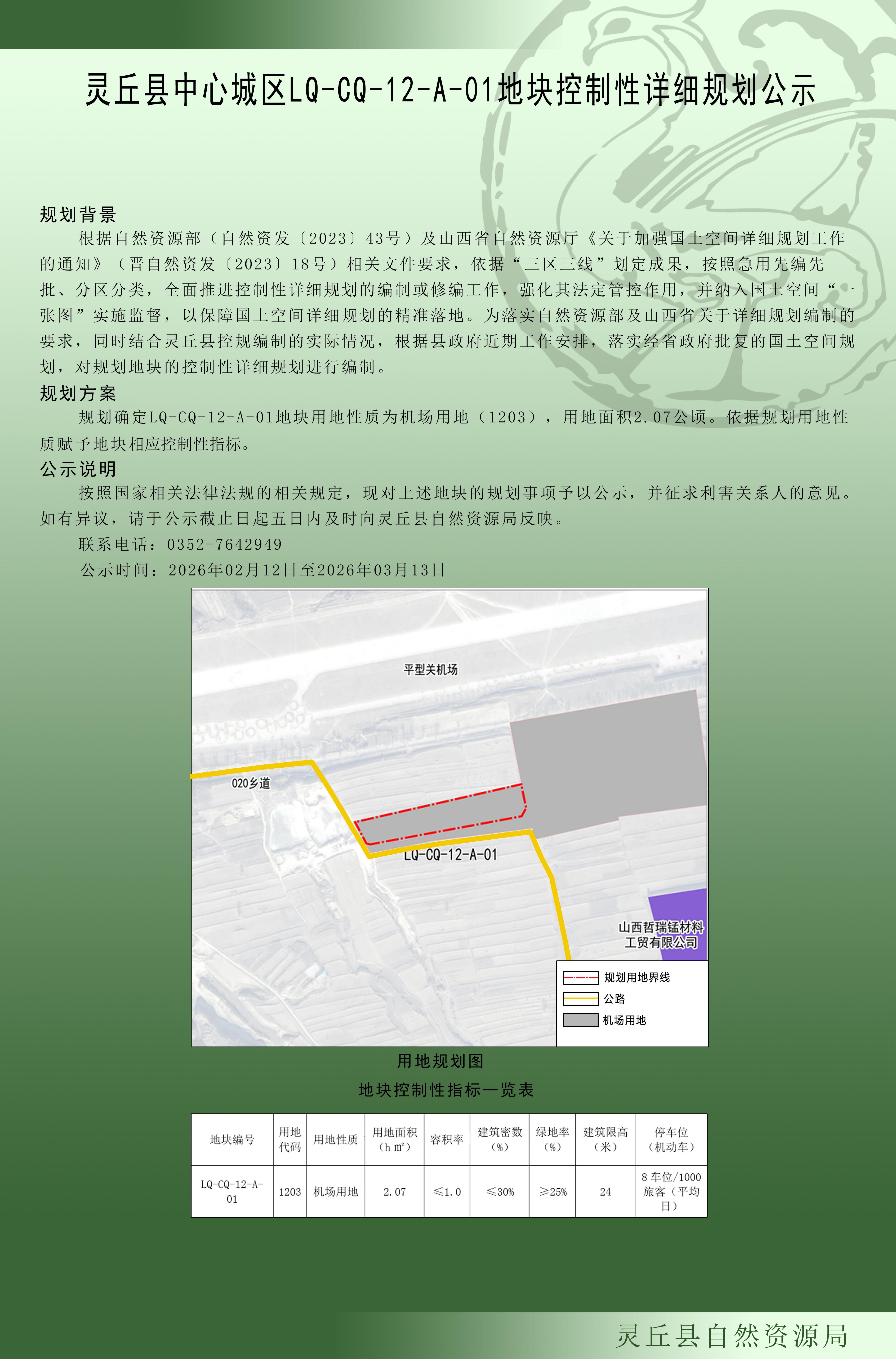 靈丘縣中心城區LQ-CQ-12-A-01地塊控制性詳細規劃公示