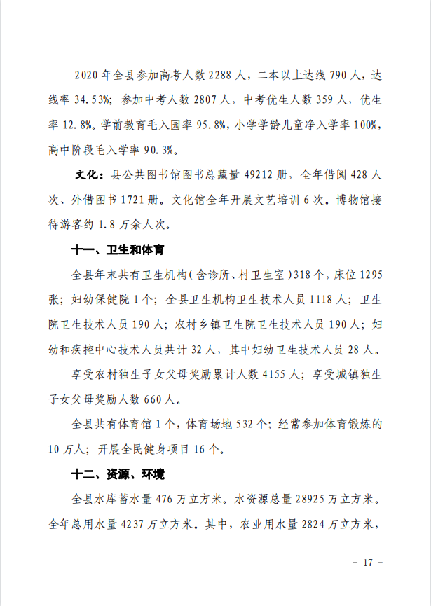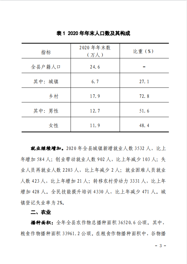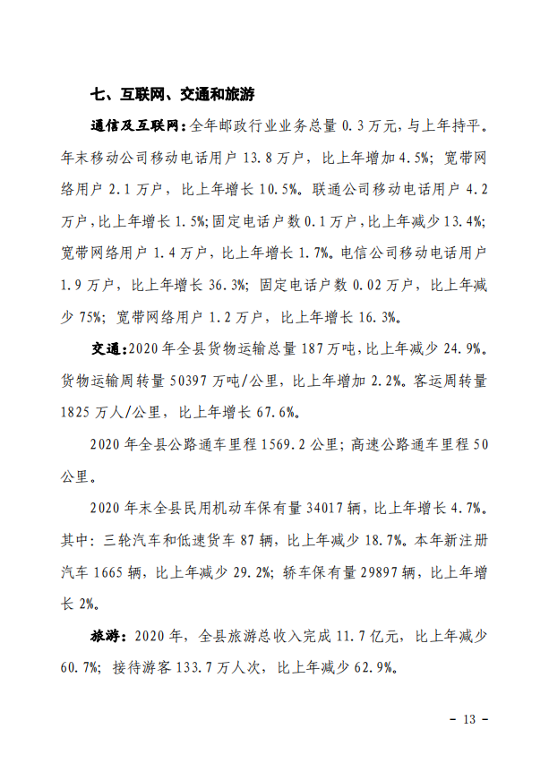 靈丘縣2020年國民經濟和社會發展統計公報