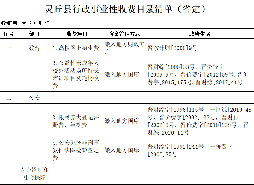 靈丘縣行政事業(yè)性收費(fèi)目錄清單(省定)